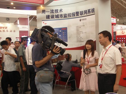 我公司还展出了拥有自主知识产权的产品——城市监控报警联网系统、电子岗哨、网络视频服务器、移动应急指挥平台等,我公司参与国家十一五项目及3111工程系列标准制定情况以及我公司在安防工程、多级运营服务体系与冗灾备份系统建设等方面取得的成绩。