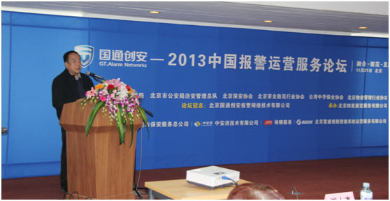 国通创安公司董事长秦嘉黎在“国通创安——2013中国报警运营服务论坛”作了题为《技防与人防的结合 促成保安服务业的创新与发展》的主题演讲。