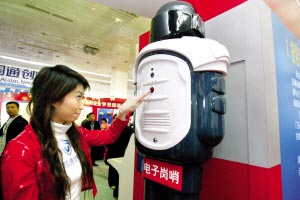 10月30日,一个身高2.3米、可与报警人直接对话的“电子岗哨”亮相中国国际社会公共安全产品博览会。“电子岗哨”不仅能使报警人与110接警中心实现通话,还能自动拍下抢劫、打架等画面,并自动报警。